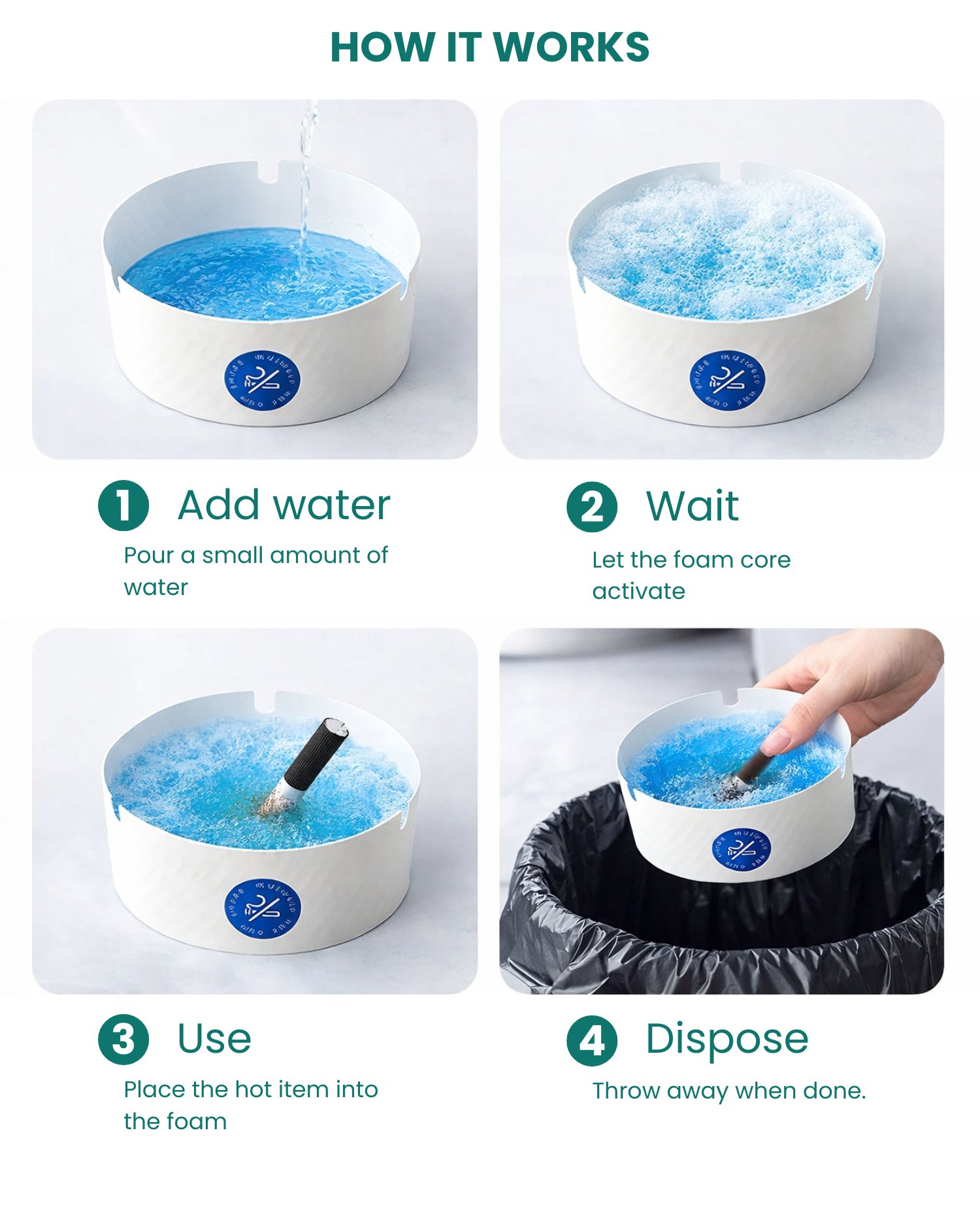 Water activates the foam core to help extinguish faster and reduce lingering odor.